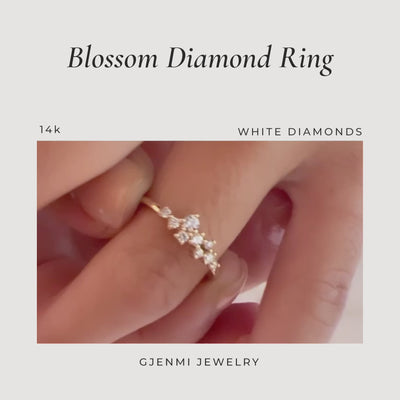 Gjenmi's Blossom Ring features nine white diamonds blossoming on a solid 14k gold band.